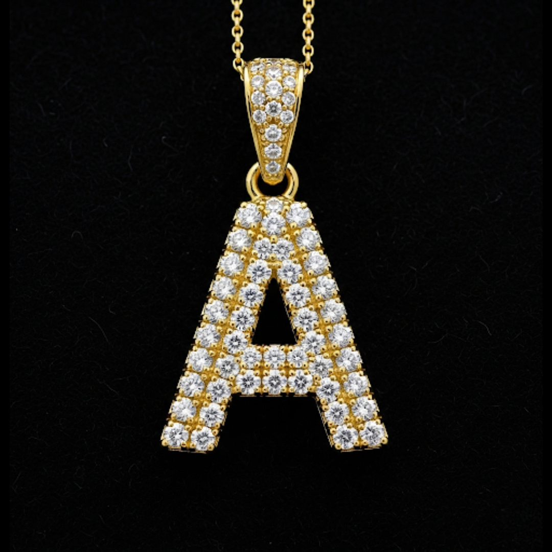 10K YELLOW GOLD DIAMOND INITIAL PENDANT WITH 1.38CT DIAMONDS