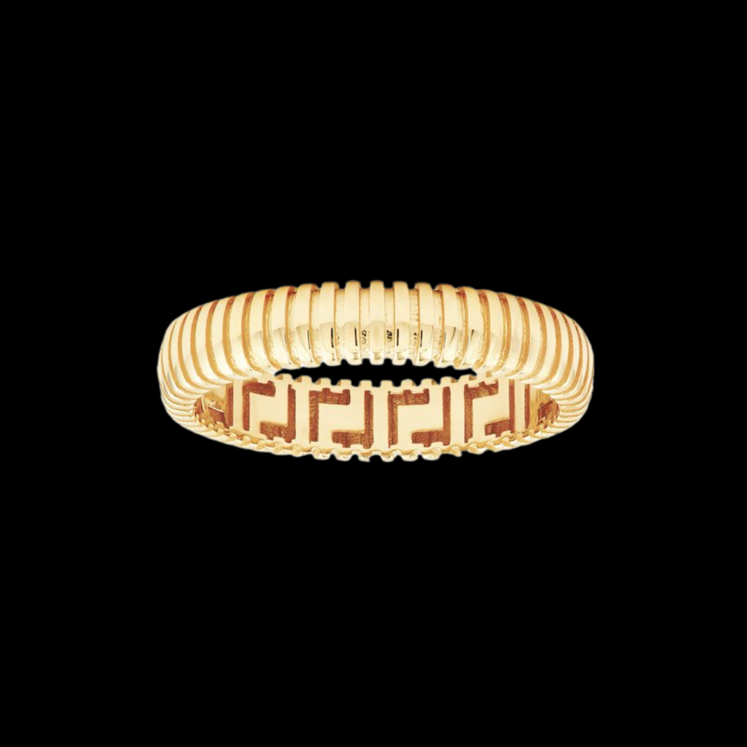 Designed to shine solo or stacked, this 14K gold 4mm band is iconic and sleek, with ribbed detailing that makes a statement.